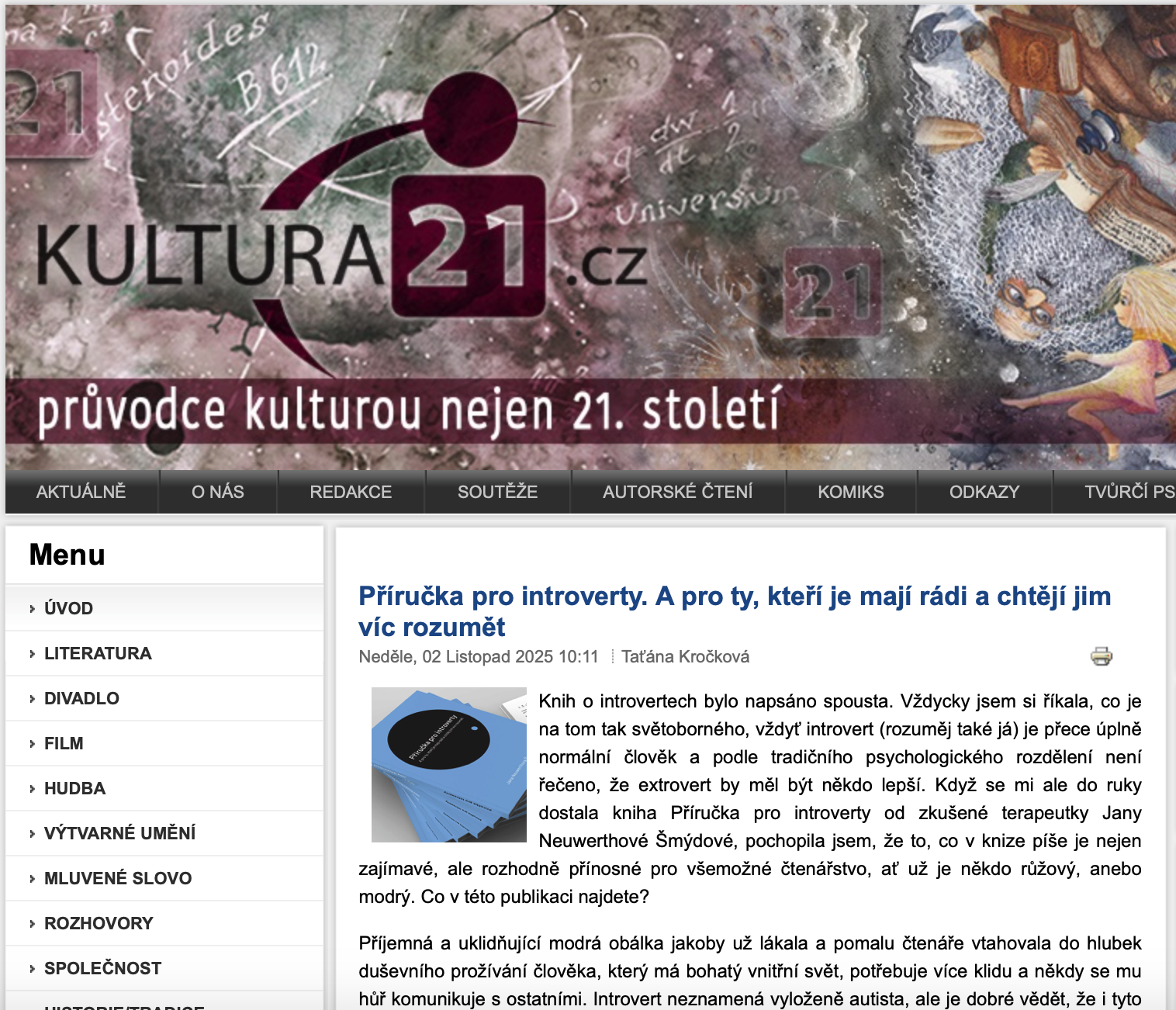 - Nyní vydávám svojí 2. knihu - Příručka pro introverty.